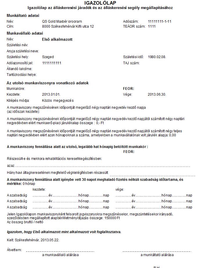 Nyomtatványok/Kilépők nyomtatványai/Igazolólap munkanélküli járadékhoz menüpont alatt érik el a kilépő dolgozók ezen nyilatkozatát.