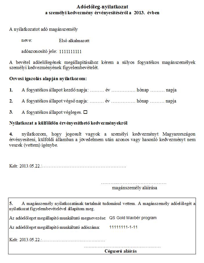 Nyomtatványok/Belépők nyomtatványai/Személyi kedvezmény adóelőleg nyilatkozat menüpont, vagy a Nyomtatványok/Nyilatkozatok, igazolások/Személyi kedvezmény adóelőleg nyilatkozat menüpont alatt tudja kinyomtatni a kedvezmény igényléséhez szükséges nyomtatványt. A személyi kedvezményt a súlyos fogyatékosságról szóló orvosi igazolás alapján lehet igénybe venni. Orvosi igazolás nélkül veheti igénybe az, aki rokkantsági járadékban részesül.