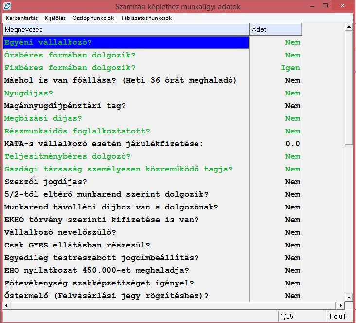 A sablonok meghatározzák a jogviszony típusát (08-as bevallás) és a fontosabb munkaügyi adatokat (számfejtés módja, teljes/részmunkaidő, nyugdíjas-e).