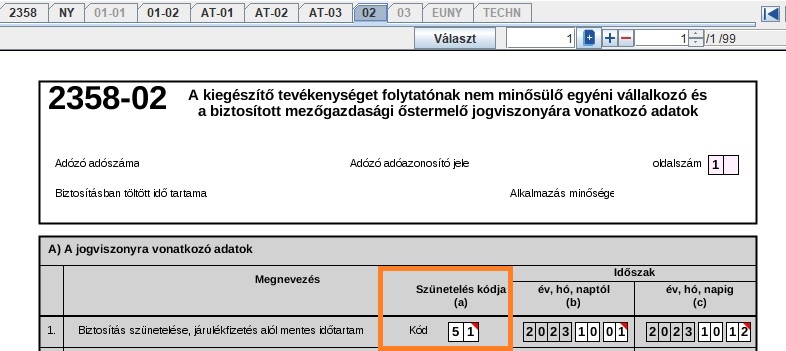 - Az 58-as szocho és járulék bevallás bevallásban a 02-es lapon a távollét 51-es kóddal fog szerepelni.