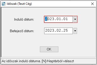 Az "Időszak" gombra klikkelve beírható egy dátum intervallumot.