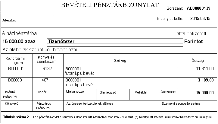 Ha ezt a rendszerparamétert igenre állította akkor a bizonylatokon a Kiállító és Pénztáros mező kitöltésre kerül.