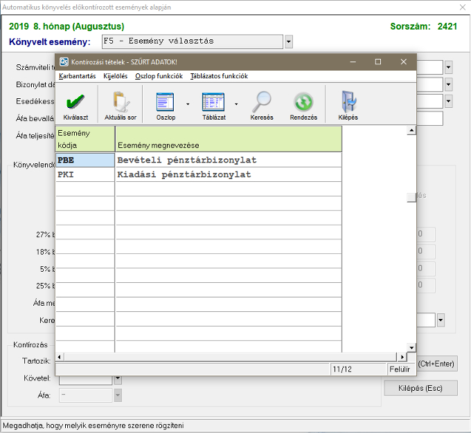 Kezdésként egy felugró ablakban ki kell választani a rögzíteni kívánt bizonylat hónapját.
