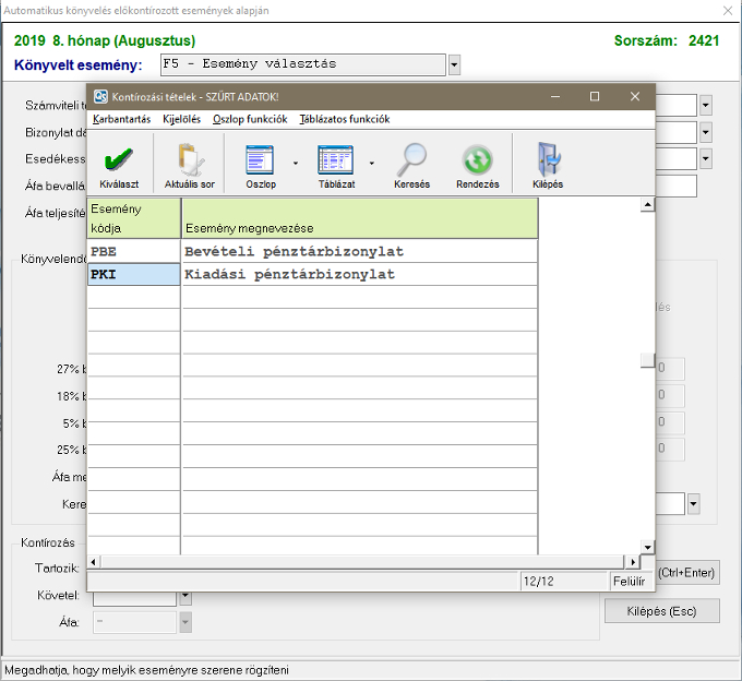 Ez után ugrik fel a bizonylat választó ablak, itt tudjuk kiválasztani a kiadási bizonylatot.