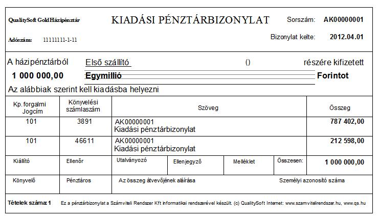 Megjegyzés: A 390-es és a 391-es rendszerparaméterekkel szabályozható, hogy a könyvelt tétel bizonylatszáma a pénztárbizonylat száma legyen, vagy kézzel megadható. A két rendszerparaméterről bővebben itt olvashat: Rendszer paraméterek (Házi pénztár)