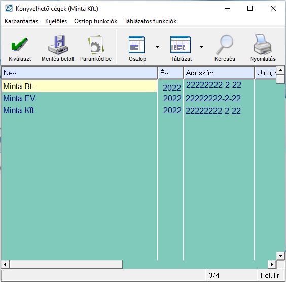 Több cég kezelésére alkalmas programunkban van lehetőség menet közbeni cég váltásra is. Ez elősegíti a munka folyamat gyorsaságát. A végre hajtásához nem kell kilépni a programból elég a Könyvelés / Könyvelendő cég választása menüpontot elindítani. A menüpont elindítása után egy lista ugrik fel ahol szabadon kiválaszthatjuk az általunk kívánt céget melybe adatot szeretnénk felvinni.