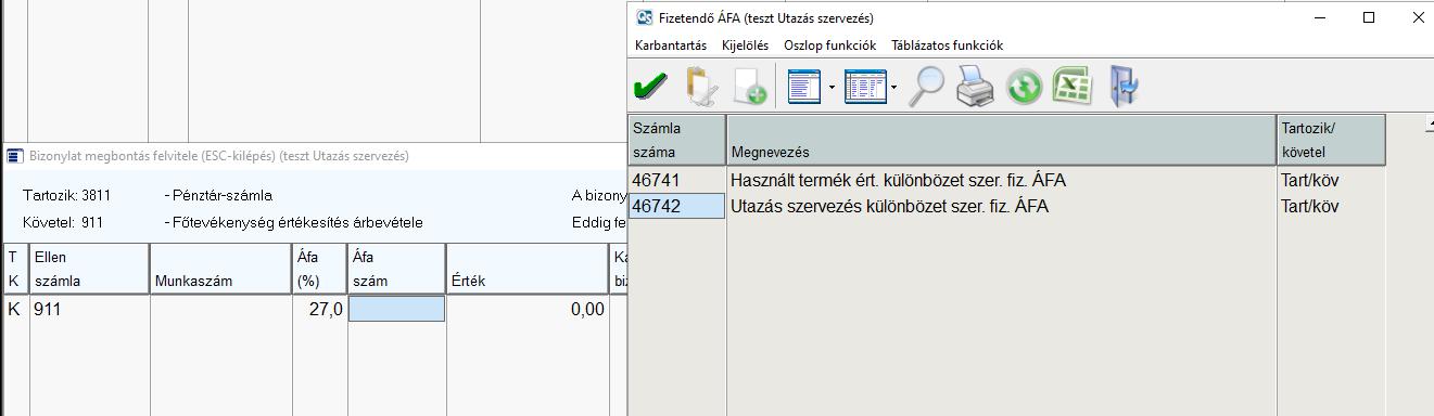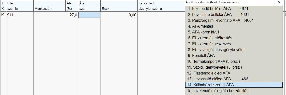Ezt követően a könyvelési ablakban már kiválasztható ez az áfa típus is.