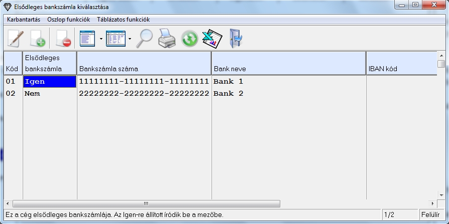 A menüpont elindítása után ezt a képet látjuk, itt tudjuk számon tartani a kettőn felüli bankszámla számainkat.