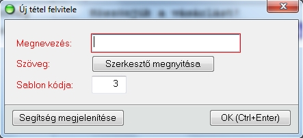 A megszokott módon tudjuk őket karbantartani ("+" gomb felvétel, "-" gomb tölés, "SPACE" gomb szerkesztés.). Felvétel során egy megnevezést kell adni a bizonylat szövegnek, fel kell vinni a szöveget a szerkesztő ablakban és egy kódot kell adni számára, mely 1-3-tól eltérő szám.