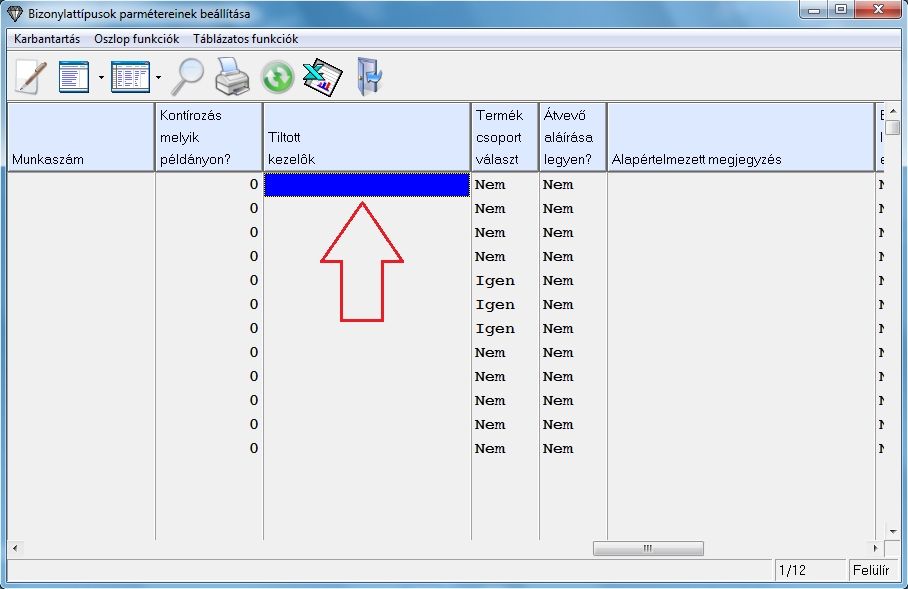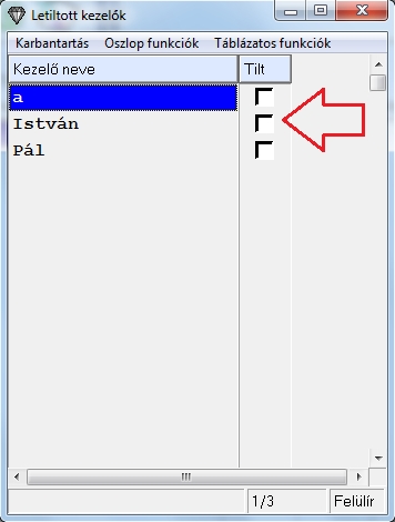A mezőre enterezve az alábbi ablak jelenik meg, ahol a kezelő neve mellet található négyzetet kipipálva tilthatjuk le őket.