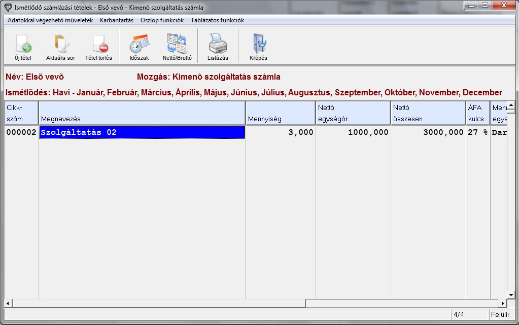 Karbantartás -> Vevők karbantartása -> Ismétlődő számlák felvitele oszlop