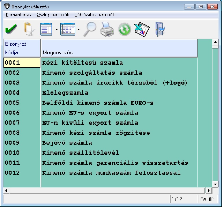 Bizonylatokat a Bizonylat/bizonylatrögzítés menüpontban tudunk rögzíteni. A bizonylat rögzítés menüpontban a hónap kiválasztása után ki kell választanunk a rögzíteni kívánt számla fajtáját, és ezután rögzíthetjük.