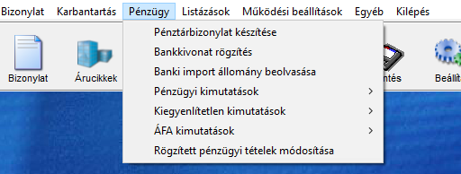 Készlet-számla programunkban lehetőség van Pénzügyi modul használatára, melyben Pénztárral és bankkal kapcsolatos műveleteket tudnak végrehajtani.
