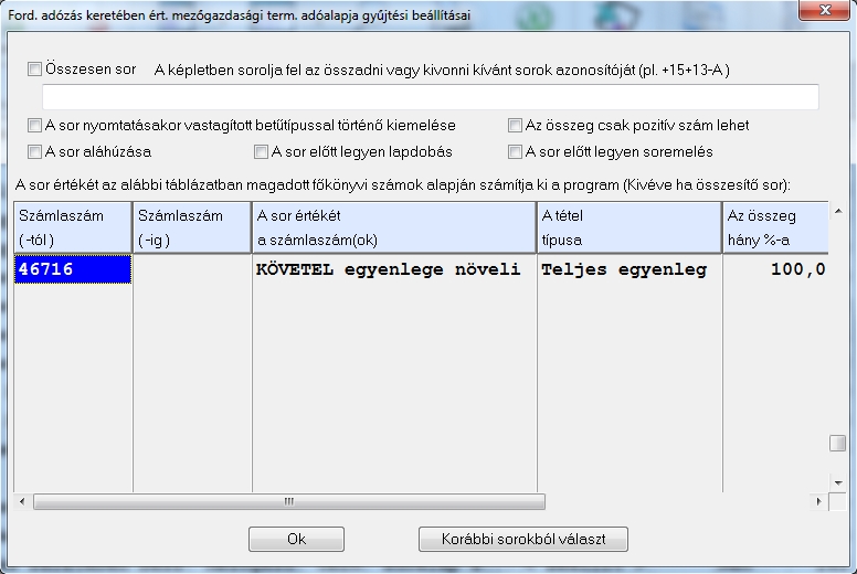 A tétel lerögzítése után ha ezek a beállítások és rögzítési menetek el lettek végezve akkor a Listázások /ÁFA kimutatások / Mezőgazdasági ford. áfa tételek nevű menüpontnál ki is listázhatók a rögzített részletező adatok.