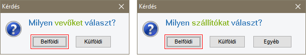 A menüpont kiválasztása után felugró ablakban tudjuk kiválasztani milyen típusú vevőt vagy szállítót szeretnénk felvinni (Külföldi vagy belföldi).