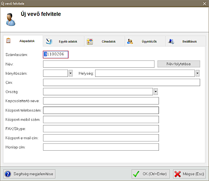 Új vevő esetén a következő ablak jelenik meg: