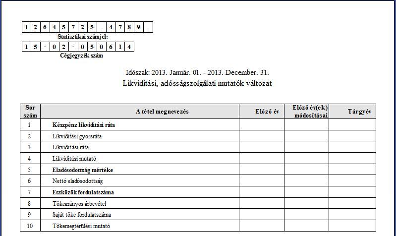 Programunkban elkészíthetőek a kiegészítő melléklethez szükséges mutatószámok. Ehhez a Zárás-nyitás / Mutatószámok / Likvidítási és adósszolgálati mutatók menüpontot kell lefuttatni.