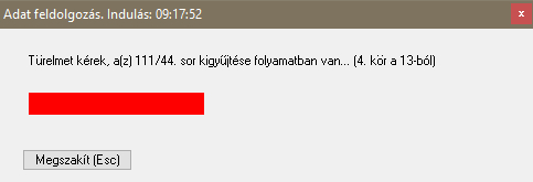 A "Fedlap nyomtatása" mezőn kívül a többi lekérési lehetőség szabadon megadható. Mivel a programnak havonta külön kell kigyűjtenie az adatokat és értelmeznie az esetlegesen beállított képleteket, ezért ez a fajta lekérési mód hosszabb ideig dolgozik, mint a többi lehetőség. Természetesen, minél nagyobb időintervallumra lett lekérve a lista, annál hosszabb időt vesz igénybe a feldolgozás. A kigyűjtés előrehaladásáról egy folyamat jelző ablak ad tájékoztatást.