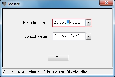 A menüpontra kattintva egy adat bekérő ablak ugrik fel, ahol meg tudjuk adni az idő intervallumot amelyre elkészítse az összesítő kimutatást a program.