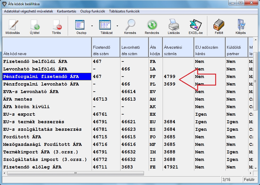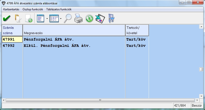 Programunkban van lehetőség alábontott pénzforgalmi átvezetési számla használatára. Ehhez annyi a teendő, hogy az ÁFA kódok karbantartása menüben az átvezetési számlaszámhoz egy alábontott főkönyvi számot kell beállítani.