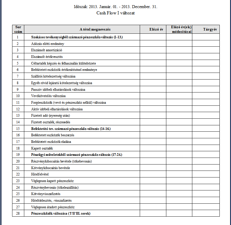 Az éves beszámolót készítő vállalkozásoknak 1997. évtől kötelezően, cash-flow kimutatást kell készíteni, és ezt mint a kiegészítő melléklet elválaszthatatlan része közölni kell. A cash-flow kimutatást az adott üzleti évre vonatkozóan kell elkészíteni előre a törvény által meghatározott szerkezetben és tartalommal. A cash-flow kimutatás segítségével megállapítható, a vállalkozás tényleges pénzmozgásai és bevételei, a pénzeszköz változást előidéző kiadások, valamint ezeket befolyásoló tényezők.