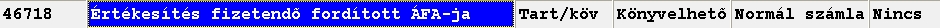 Könyvelő programunkban ha a kimenő számláink között vannak fordított ÁFA-s számlák (tehát a vevőt terheli fizetendő ÁFA) akkor a könyveléshez az lenne a teendő először is, hogy a "467"-es számlának a számlatükör karbantartásában csinálunk egy alábontást, például "46728". (Értékesítés fizetendő fordított ÁFA-ja néven szerepel az alapszámlatükörben amit a programhoz mellékelünk.).