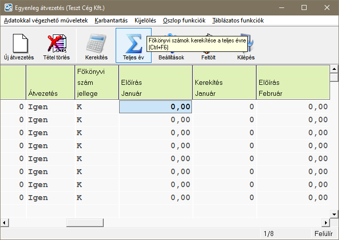 FONTOS! A kerekítést KÖTELEZŐ elvégezni minden hónapra a zárási folyamat elindítása előtt!