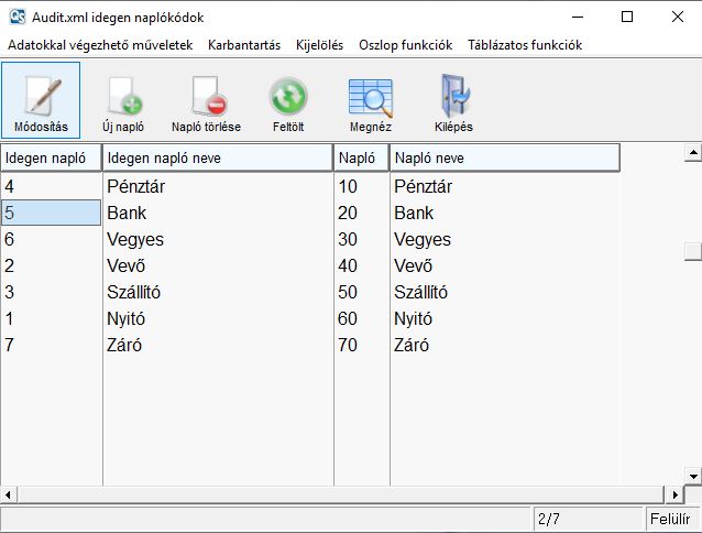 1. A feltölt gombra kattintva felülírhatja az audit.xml-ben szereplő adatokkal az alap beállítást és ehhez tudja hozzárendelni a programunkban szereplő naplókat.