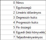 Az értékcsökkenés típusa mező kitöltése kötelező! Az alábbi számokat lehet használni: